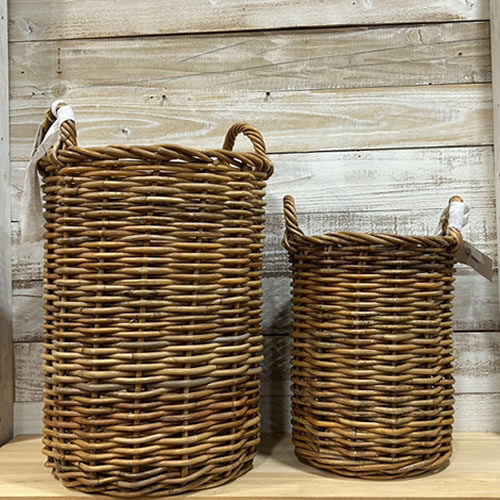 スリムな縦型で長いものを収納するときにも便利です。お部屋の中で存在感を感じさせる味わいのあるバスケットです。